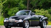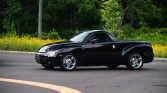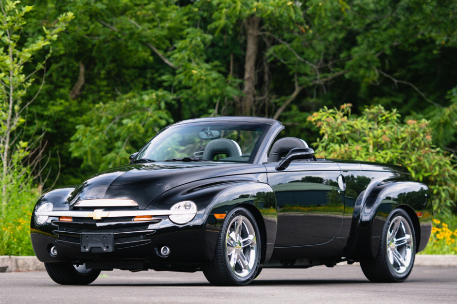 This 2005 Chevrolet SSR is finished in black over black leather and powered by a 6.0-liter LS2 V8 mated to a six-speed manual transmission and a limited-slip differential. Features include a retractable roof, a hard tonneau cover, heated and power-adjustable seats, a Belltech lowering kit, chrome-finished wheels, wood bed trim, a Bose audio system, and the optional 1SB Premium Equipment Group. The truck was first registered in Wisconsin and spent time in Illinois, Ohio, and Michigan before…