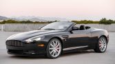 This 2006 Aston Martin DB9 Volante is a black-over-black convertible that is powered by a 5.9-liter V12 paired with a six-speed automatic transaxle. Equipment includes a power-operated black soft top, rear parking sensors, 19″ alloy wheels, heated and power-adjustable front seats, automatic climate control, navigation, cruise control, power windows, and an in-dash CD changer.