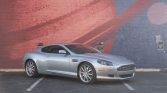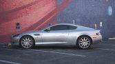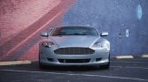 This 2006 Aston Martin DB9 is finished in Titanium Silver over black leather and powered by a 5.9-liter DOHC V12 mated to a paddle-shifted six-speed automatic transaxle with a limited-slip differential. Additional equipment includes 19″ alloy wheels, xenon headlights, rear parking sensors, power-adjustable front seats, navigation, automatic climate control, keyless entry, and cruise control.