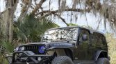 This 2006 Jeep Wrangler Unlimited Rubicon is powered by a 4.0-liter inline-six linked with a four-speed automatic transmission, a dual-range Rock-Trac transfer case, Dana 44 front and rear axles, and Tru-Lok remote-locking differentials. Finished in Brilliant Black over black and gray upholstery, the truck is equipped with a removable gray and black hardtop, a 4.5″ suspension lift kit, a Fox steering stabilizer, Bilstein shocks, four-wheel disc brakes, 17″ alloy wheels, a Smittybilt winch and bumpers, LED lighting, tubular steel fenders, full metal doors, a roll bar, a CB radio, air conditioning, and a Pioneer CD stereo linked to a custom sound system.