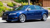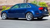 This 2007 Audi RS4 is finished in Mugello Blue Pearl Effect over Silver Nappa leather and powered by a 4.2-liter V8 paired with a six-speed manual transaxle and all-wheel drive. Equipment includes a sunroof, heated front and rear seats, automatic climate control, carbon-fiber trim, 19″ wheels, integrated fog lights, navigation, rear sun shades, and a Bose premium sound system. The car was first registered in Michigan, and it was acquired by the current owner in 2018 and relocated to California. Replacement tires were mounted in 2018, and an oil change was performed in preparation for the sale.