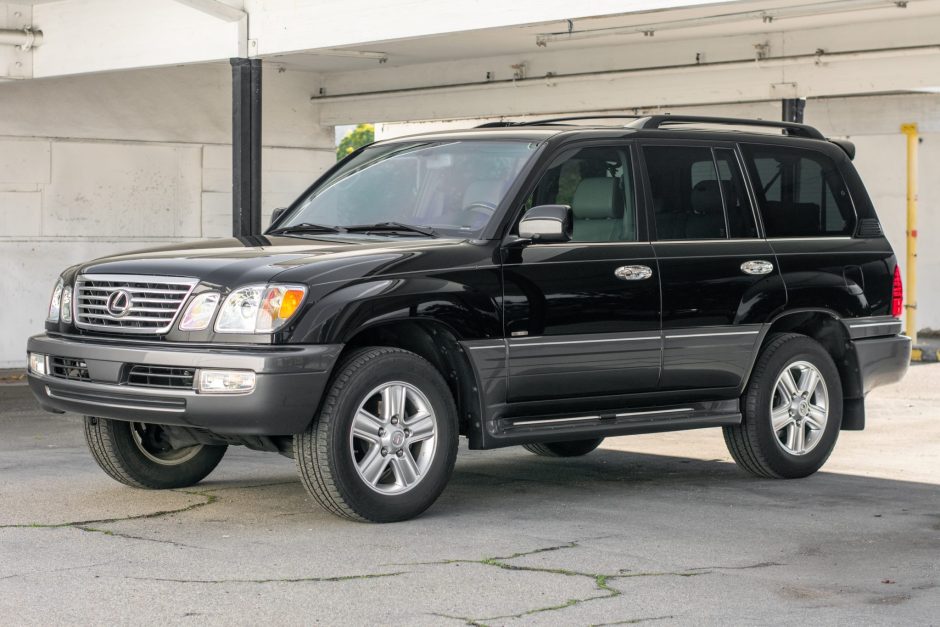 This 2007 Lexus LX470 is one of 400 Limited Edition examples produced for the model year, and it is finished in Black Onyx over Stone leather. Power comes from a 4.7-liter V8 paired with a five-speed automatic transmission, a dual-range transfer case, and a locking center differential. Additional equipment includes 18″ alloy wheels, Adaptive Variable Suspension with Adjustable Height Control, a sunroof, heated front seats, a DVD player with rear passenger screens, factory navigation, a Mark Levinson sound system, and third-row seating.