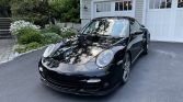 This 2007 Porsche 911 Turbo coupe is finished in black over matching full leather and powered by a twin-turbocharged 3.6L flat-six paired with a six-speed manual transaxle and all-wheel drive. Equipment includes 19″ wheels, bi-xenon headlights, aftermarket exhaust tips, the Sport Chrono Package, heated front seats, a thicker steering wheel, a sunroof, navigation, and a Bose audio system. The car was sold new by Michael Porsche of Fresno, California and remained registered in the state until it…