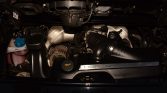 Power is sent to the rear wheels through a six-speed manual transaxle, and the car features a stainless-steel exhaust system.