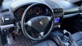 Silver 18″ Cayenne S wheels are mounted with Continental CrossContact tires showing 2018 date codes. The truck is equipped with variable-assist power steering, and stopping power is provided by four-wheel disc brakes with Porsche-branded calipers. The seller states the brakes were serviced in preparation for the sale.