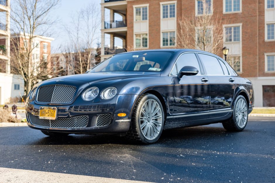 This 2012 Bentley Continental Flying Spur Speed was ordered in Dark Sapphire Metallic with Dark Bourbon leather upholstery, and it is powered by a twin-turbocharged 6.0-liter W12 driving all four wheels through a six-speed automatic transaxle. Additional equipment includes bi-xenon headlights with washers, rain-sensing windshield wipers, 20″ wheels, rear picnic tables, power-adjustable front and rear seats with position memory, heated front seats, a rear-view camera, and an 8″ touchscreen infotainment system.