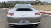 Silver-finished 19″ wheels wear colored Porsche-crest center caps and are mounted with 235/40 front and 285/35 rear Goodyear Eagle F1 tires that were installed in October 2020. Braking is handled by cross-drilled rotors with Porsche-branded calipers at all four corners.