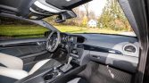 The microsuede-wrapped steering wheel features aluminum shift paddles. AMG instrumentation includes a 200-mph speedometer with an inset digital display, an 8k-rpm tachometer, and auxiliary gauges.