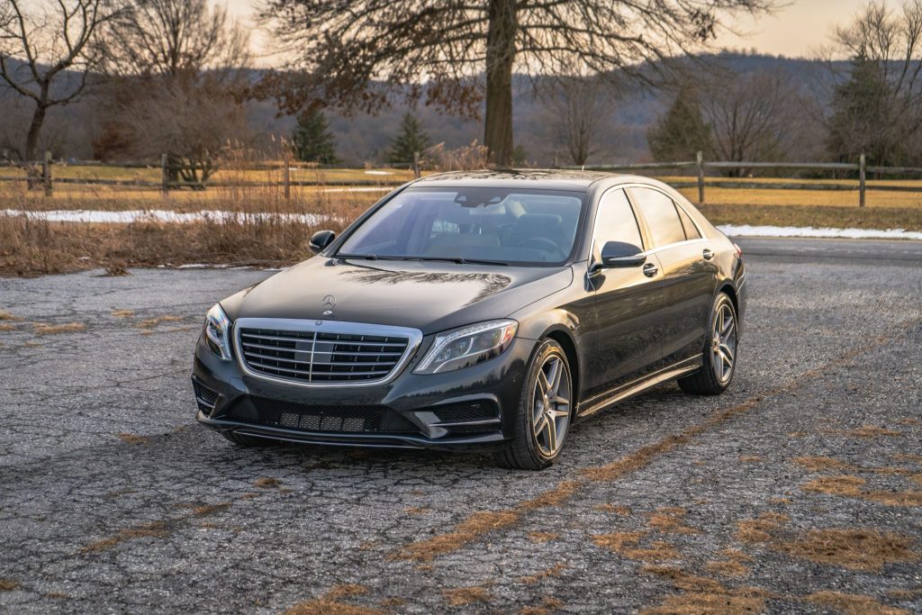 This 2014 Mercedes-Benz S550 sedan was initially delivered through Mercedes-Benz of North Scottsdale in Arizona and remained registered in the state until 2024. It is finished in Magnetite Black Metallic over Silk Beige and Espresso Brown Nappa leather and is powered by a twin-turbocharged 4.7-liter V8 paired with a seven-speed automatic transmission. Features include 19″ AMG alloy wheels, LED headlights, Parktronic, a heated steering wheel, electronic driver aids, heated and ventilated power-adjustable front and rear seats, a rearview…