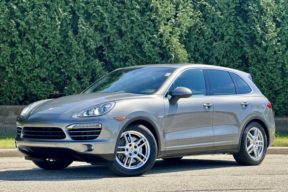 This 2014 Porsche Cayenne Diesel is finished in Meteor Gray Metallic over black leather and is powered by a turbocharged 3.0-liter diesel V6 linked with an eight-speed Tiptronic S automatic transmission and a locking center differential. Additional equipment includes the Premium Package Plus, 19″ Cayenne Turbo alloy wheels, a panoramic sunroof, ParkAssist, a backup camera, Lane Change Assist, heated and ventilated power-adjustable front seats, heated rear seats, Porsche Entry & Drive, a Bose sound system, navigation, and dual-zone…