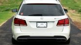 This 2015 Mercedes-AMG E63 S 4MATIC wagon is finished in Diamond White Metallic over black leather and powered by a twin-turbocharged 5.5-liter V8 paired with a seven-speed automatic transmission and 4MATIC all-wheel drive. Equipment includes an aftermarket carbon fiber front splitter, the AMG Exterior Carbon package, black-finished 19″ AMG wheels, dynamic LED headlights, a panoramic sunroof, heated and ventilated dynamic front seats, an aftermarket carbon fiber steering wheel, Keyless-GO, heated rear seats, the Driver Assistance and Parking Assist packages, COMAND infotainment with navigation, and a Bang & Olufsen sound system. The car was registered in California with its first owner until 2015, when it was repurchased by Mercedes-Benz under the lemon law buyback program because of suspension noise. It later spent time in Florida, Kentucky, and Indiana before being acquired by its current owner in September 2016. Subsequent work has included oil and brake fluid changes, replacement of the tires, and a steering rack bolt recall.