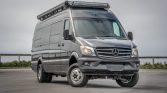 Power is routed to all four wheels through a five-speed automatic transmission. Tanks for the water and liquid propane systems are mounted to the underbody.