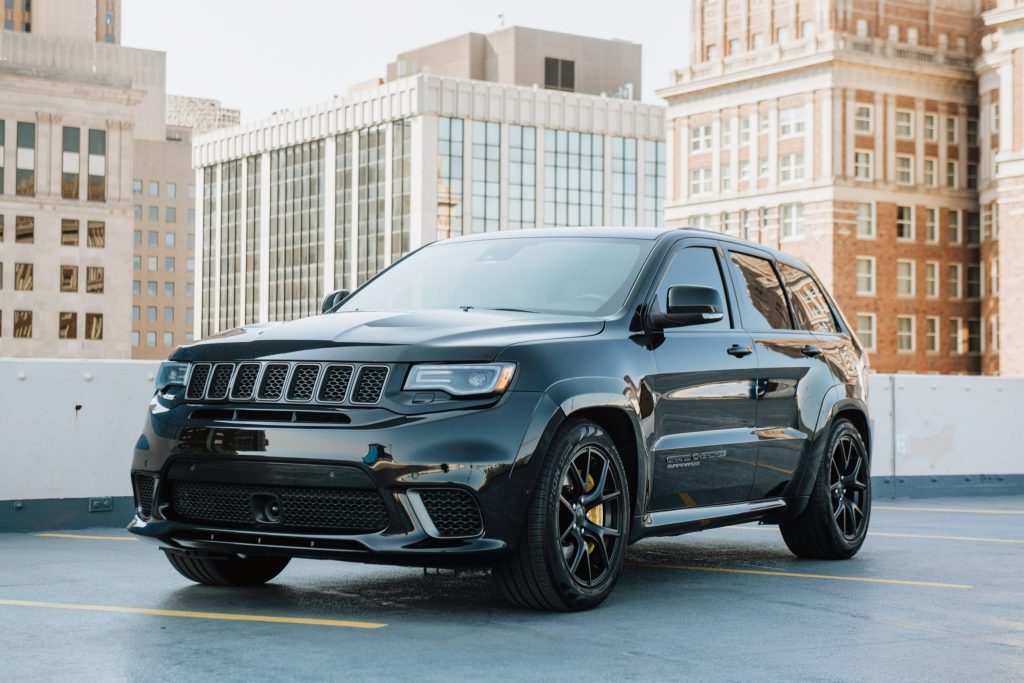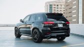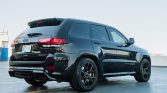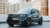 This 2018 Jeep Grand Cherokee Trackhawk is finished in Diamond Black Crystal Pearl over Sepia Nappa leather and suede and is powered by a supercharged 6.2-liter Hemi V8 linked with an eight-speed automatic transmission and an electronic limited-slip rear differential. Equipment includes an Eibach anti-roll kit and lowering springs as well as the Trailer Tow Group IV package, Quadra-Trac four-wheel drive, active-damping Bilstein competition suspension, black satin-finished 20″ aluminum wheels, heated and ventilated front seats, heated rear seats,…